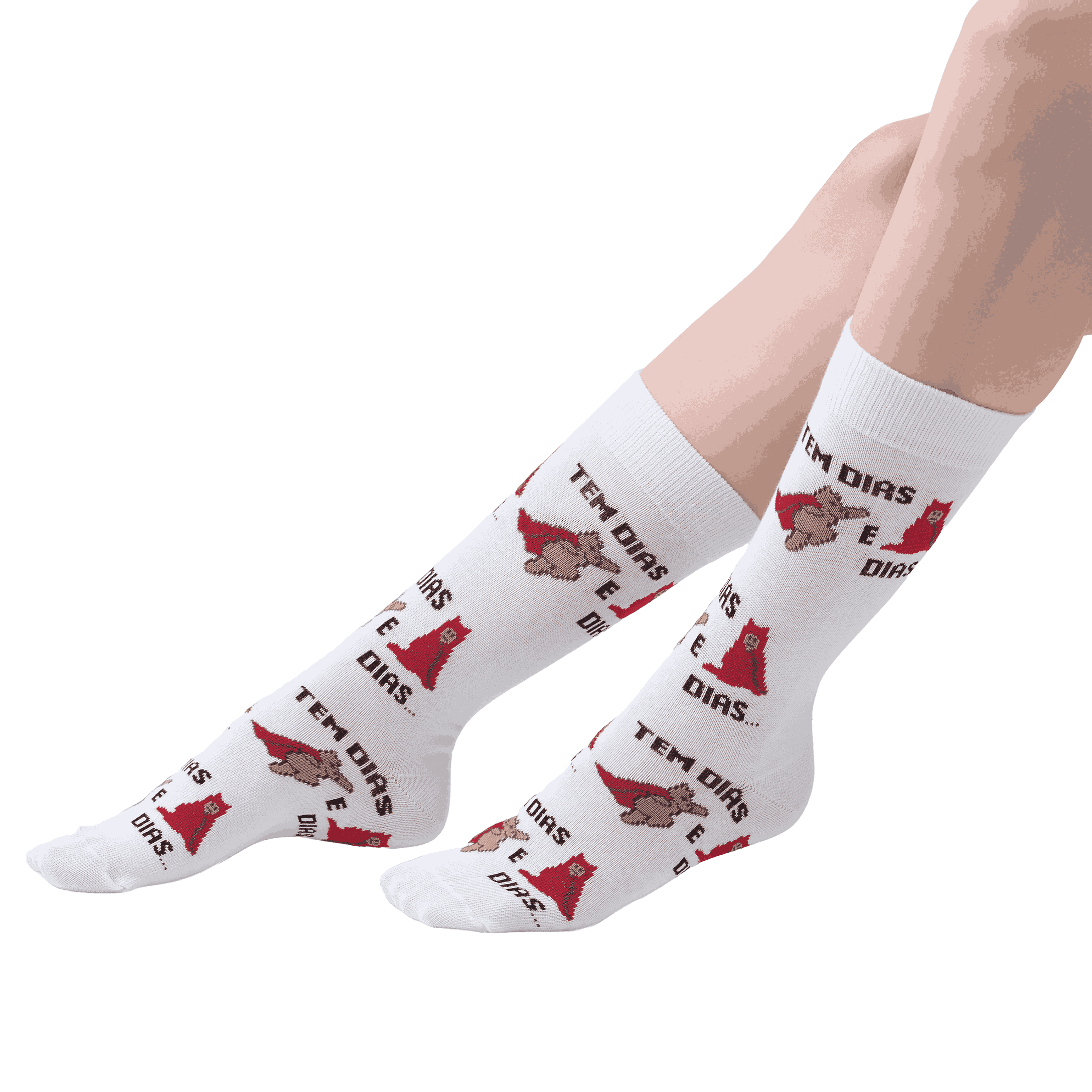 Meia modelo cano longo, confeccionadas em tecido de algodão, com estampas divertidas, acabamento e costura no mesmo tom.