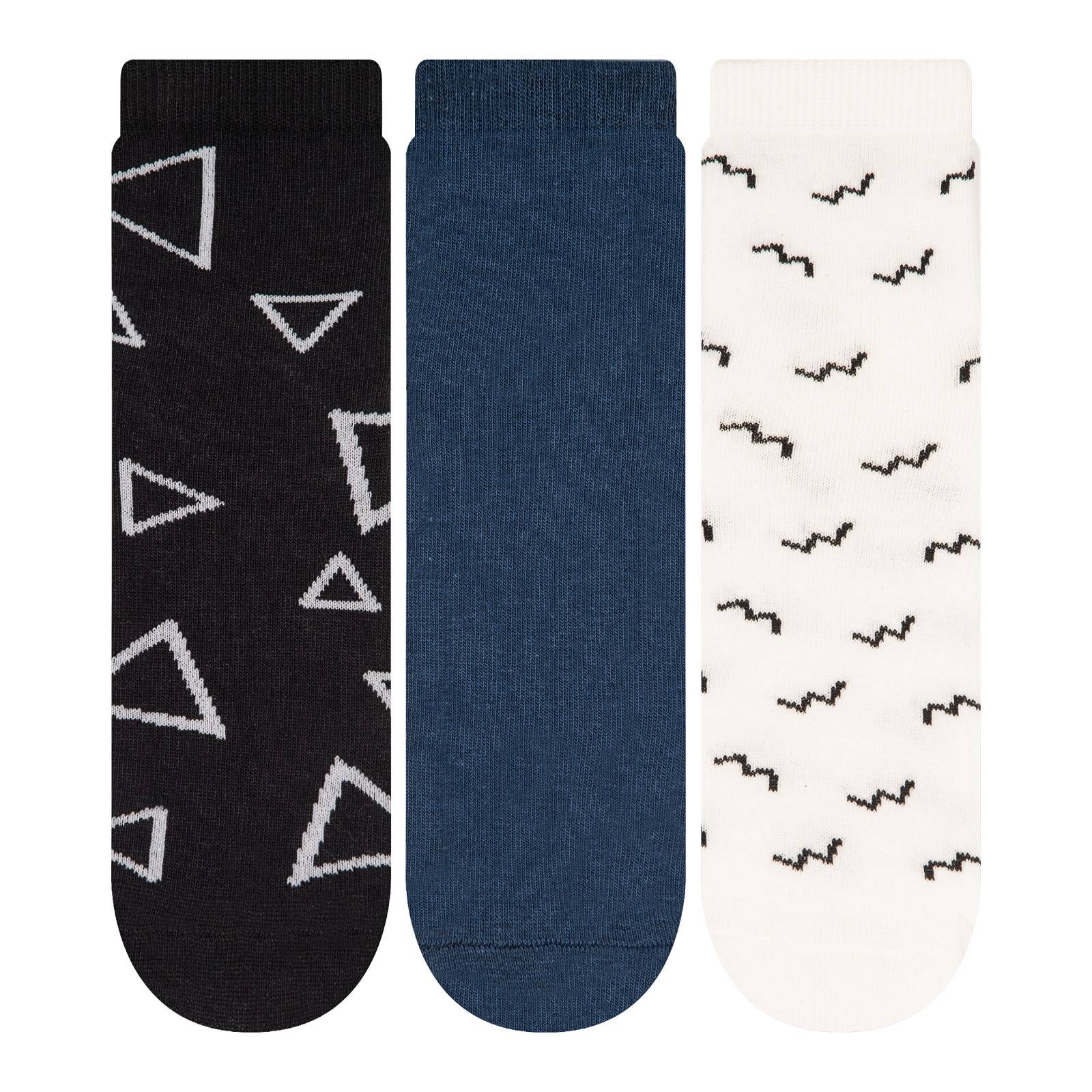 Kit composto por três pares de meias no modelo soquete. Confeccionadas em tecido de algodão, possuem estampas divertidas e costura no mesmo tom.