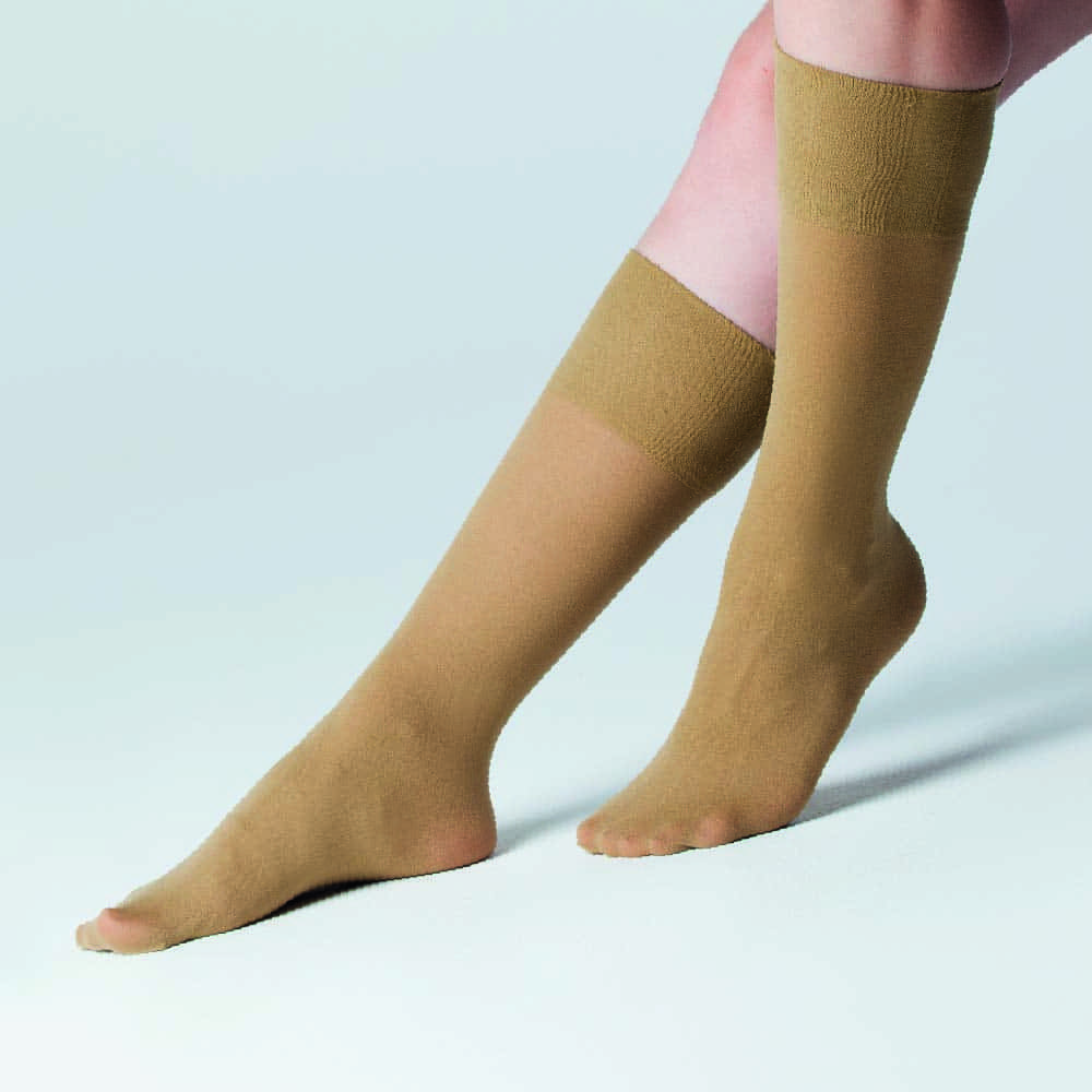 Meia 3/4 fio 40, leve e discreta, ideal para o dia a dia. Perfeita para quem busca conforto, ideal para usar com vestidos e saias.