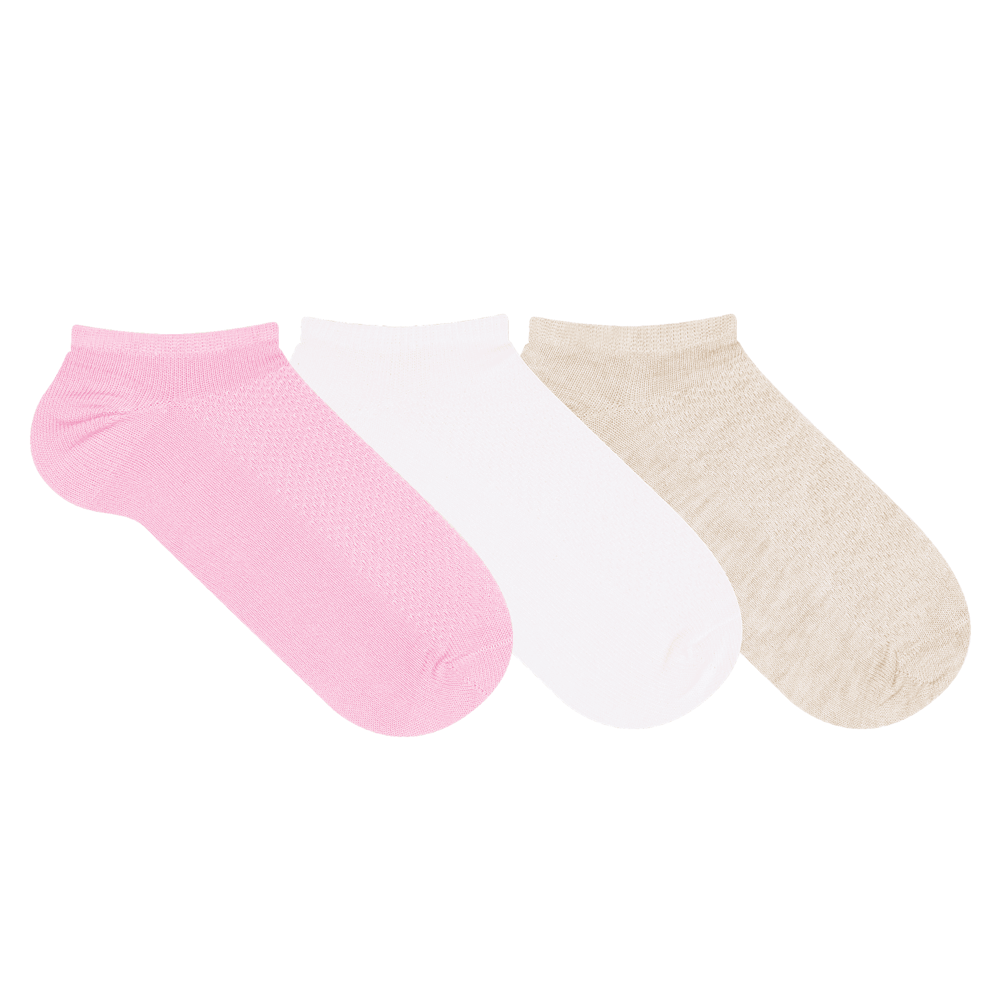 Kit composto por três pares de meias modelo invisível, confeccionada em tecido de algodão. Possui calcanhar Y que melhor encaixa aos pés, dificultado o deslocamento da meia dentro do calçado.