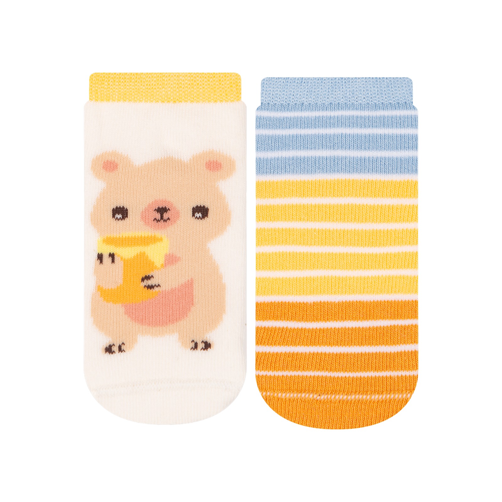 Kit composto por dois pares de meias modelo soquete, confeccionadas em algodão. Elas apresentam estampa divertidas, tecido atoalhado por toda a meia, acabamento e costura em tons harmoniosos.