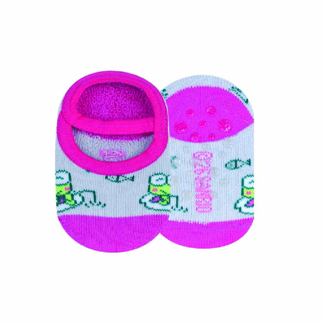 Meia modelo sapatilha com alça, confeccionadas em algodão. Elas apresentam estampas fofas do Keroppi, com acabamento e costura em tons harmonioso e antiderrapante na sola do pé, que auxilia na segurança em cada passinho.