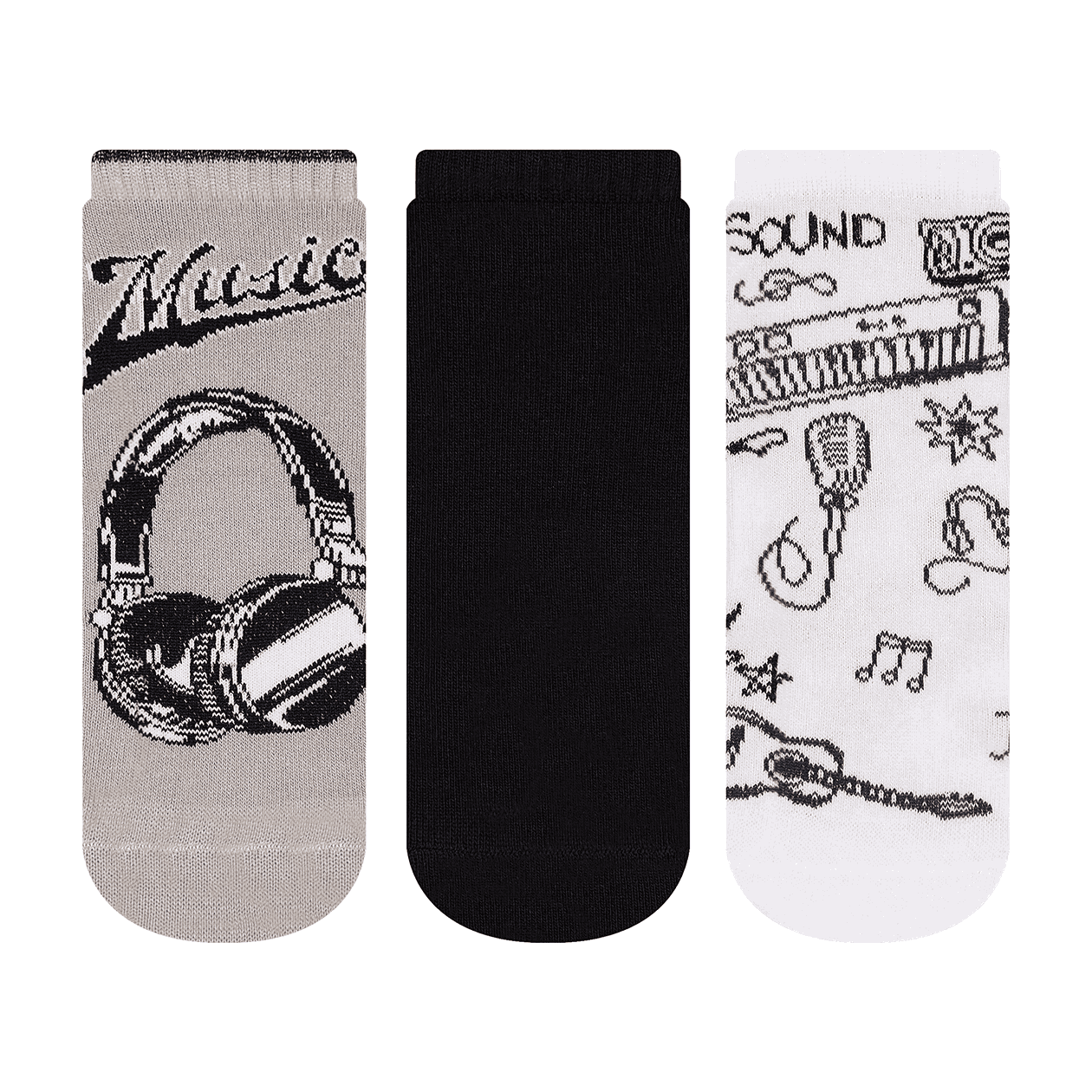 Kit composto por três pares de meias cano curto. Confeccionadas em tecido de algodão, elas apresentam estampas divertidas, com acabamento e costura no mesmo tom.