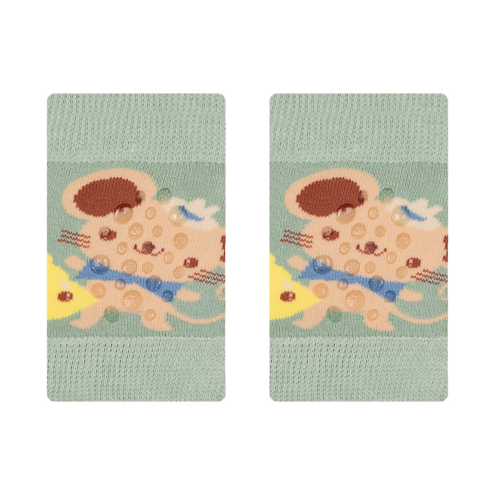 Par de Joelheiras antiderrapantes, confeccionadas em algodão, elas apresentam estampa divertidas e são projetados para proteger os joelhos do bebê.