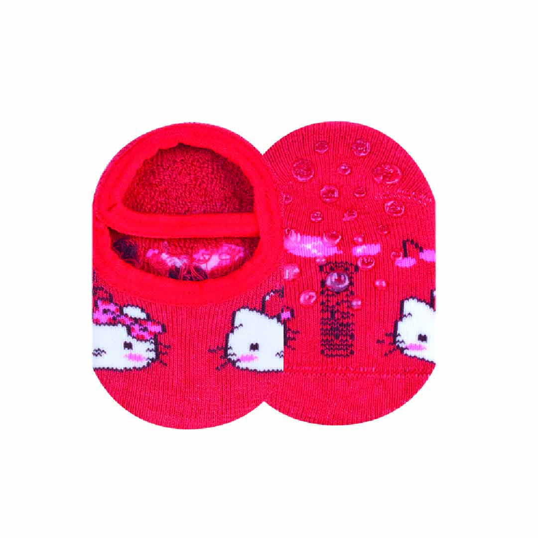 Meia modelo sapatilha com alça, confeccionadas em algodão. Elas apresentam estampas fofas da Hello Kitty, com acabamento e costura em tons harmonioso e antiderrapante na sola do pé, que auxilia na segurança em cada passinho.