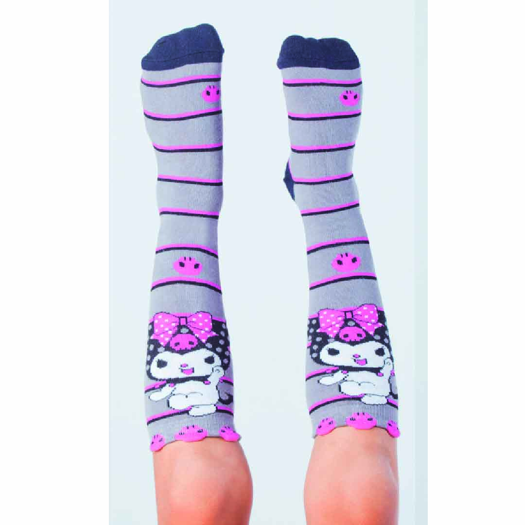 Meia modelo 3/4 com detalhe no punho em 3D, confeccionadas em tecido de algodão, com estampas fofas da Kuromi, com acabamento e costura no mesmo tom.