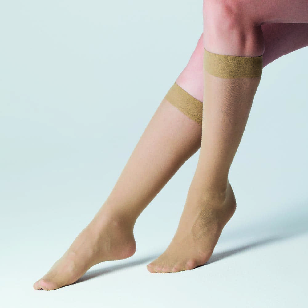 Meia 3/4 fio 15, leve e discreta, ideal para o dia a dia. Perfeita para quem busca conforto, ideal para usar com vestidos e saias.
