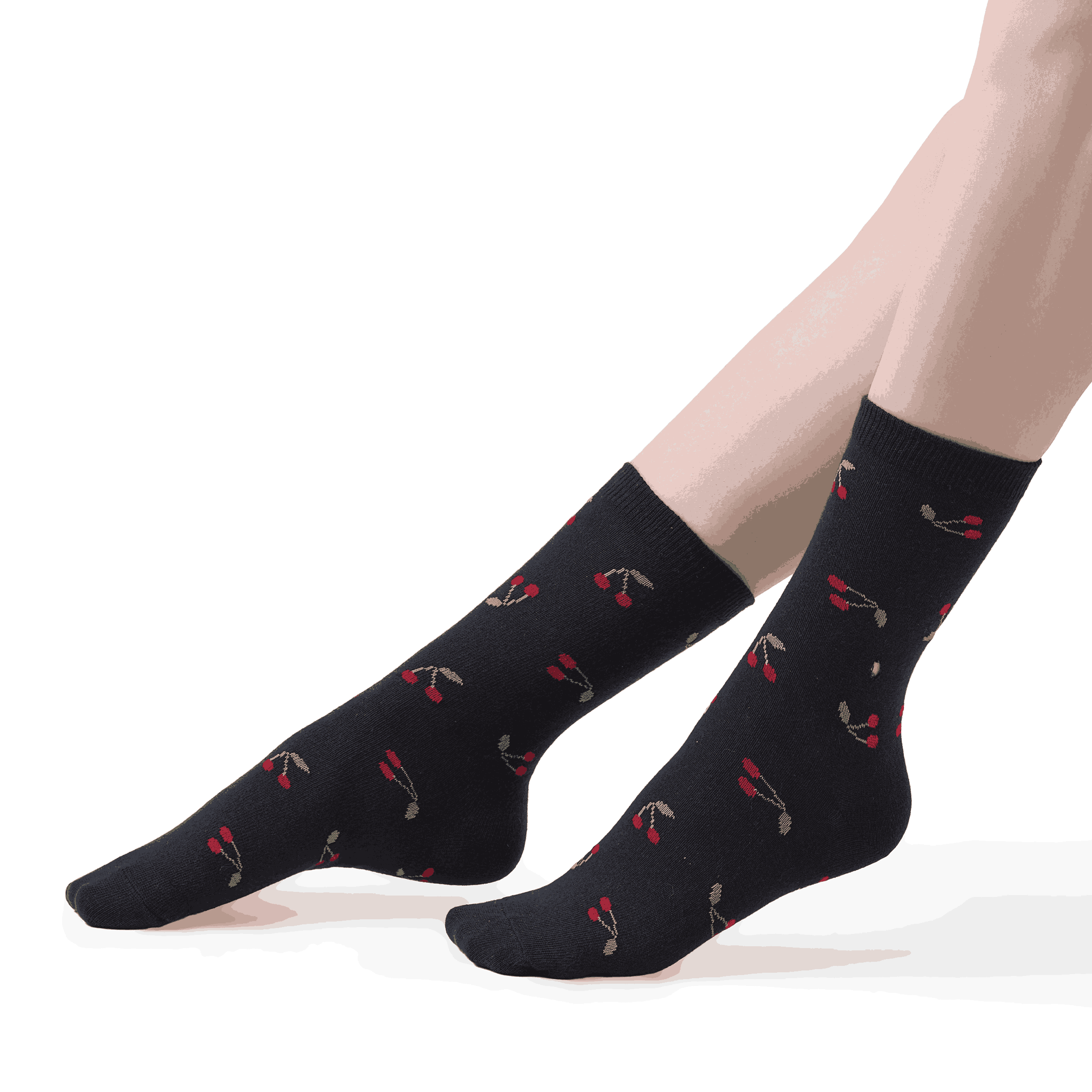 Meia modelo cano longo, confeccionadas em tecido de algodão, com estampas divertidas, acabamento e costura no mesmo tom.