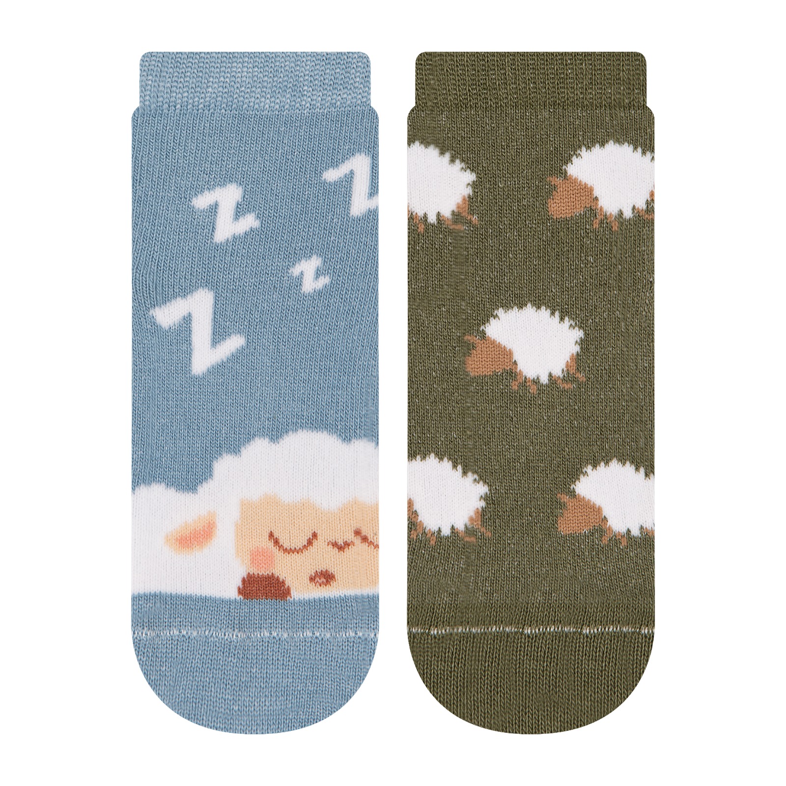 Kit composto por dois pares de meias modelo soquete, confeccionadas em algodão. Elas apresentam estampa divertidas, solado antiderrapante emborrachado, acabamento e costura em tons harmoniosos.