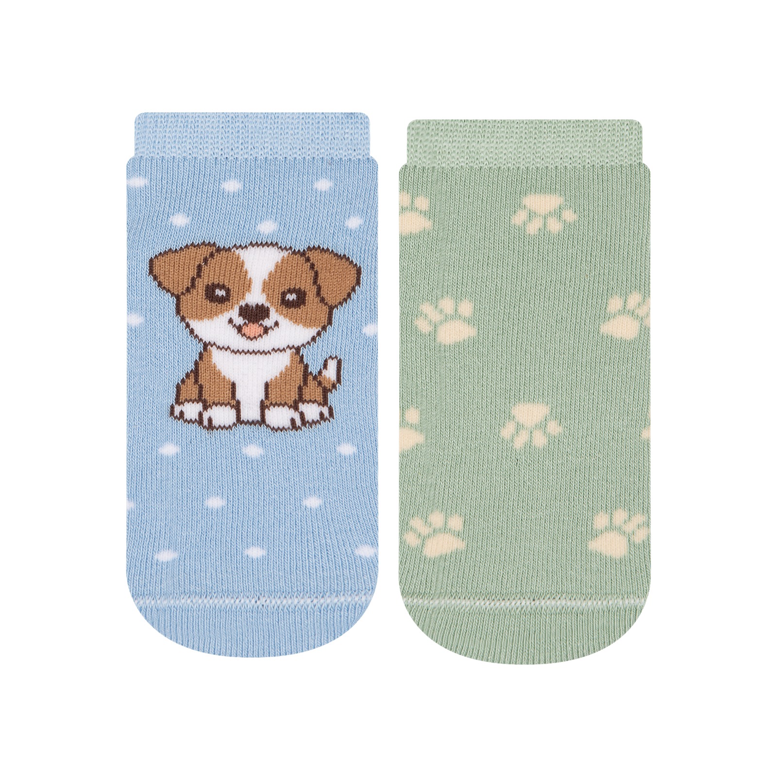 Kit composto por dois pares de meias modelo soquete, confeccionadas em algodão. Elas apresentam estampa divertidas, tecido atoalhado por toda a meia, acabamento e costura em tons harmoniosos.