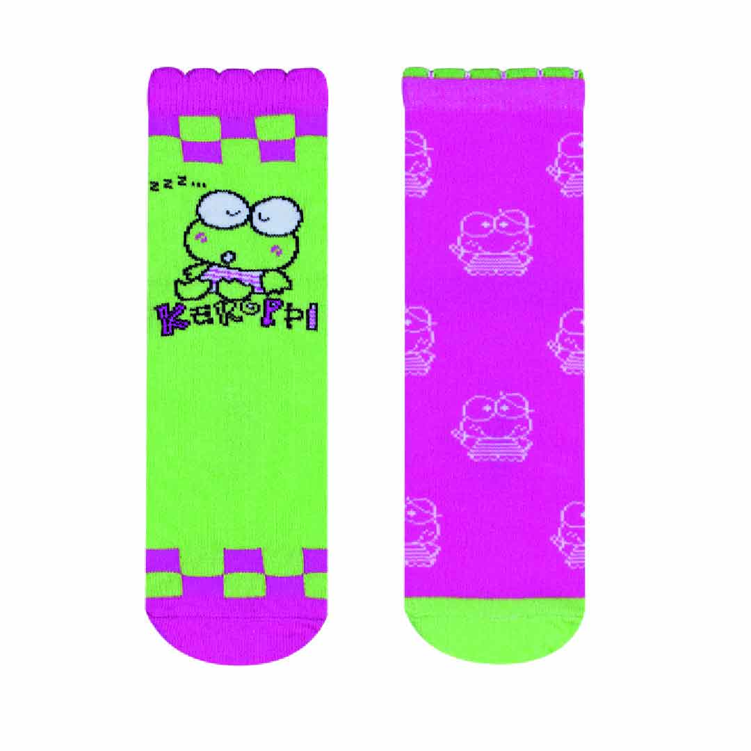Kit composto por dois pares de meias modelo soquete, confeccionadas em tecido de algodão, com estampas fofas da Keroppi, acabamento e costura no mesmo tom.