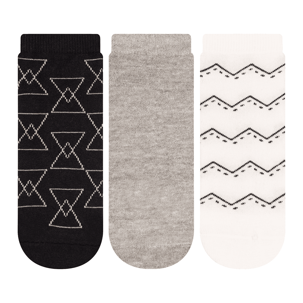 Kit composto por três pares de meias cano curto. Confeccionadas em tecido de algodão, com estampas divertidas, acabamento e costura no mesmo tom.