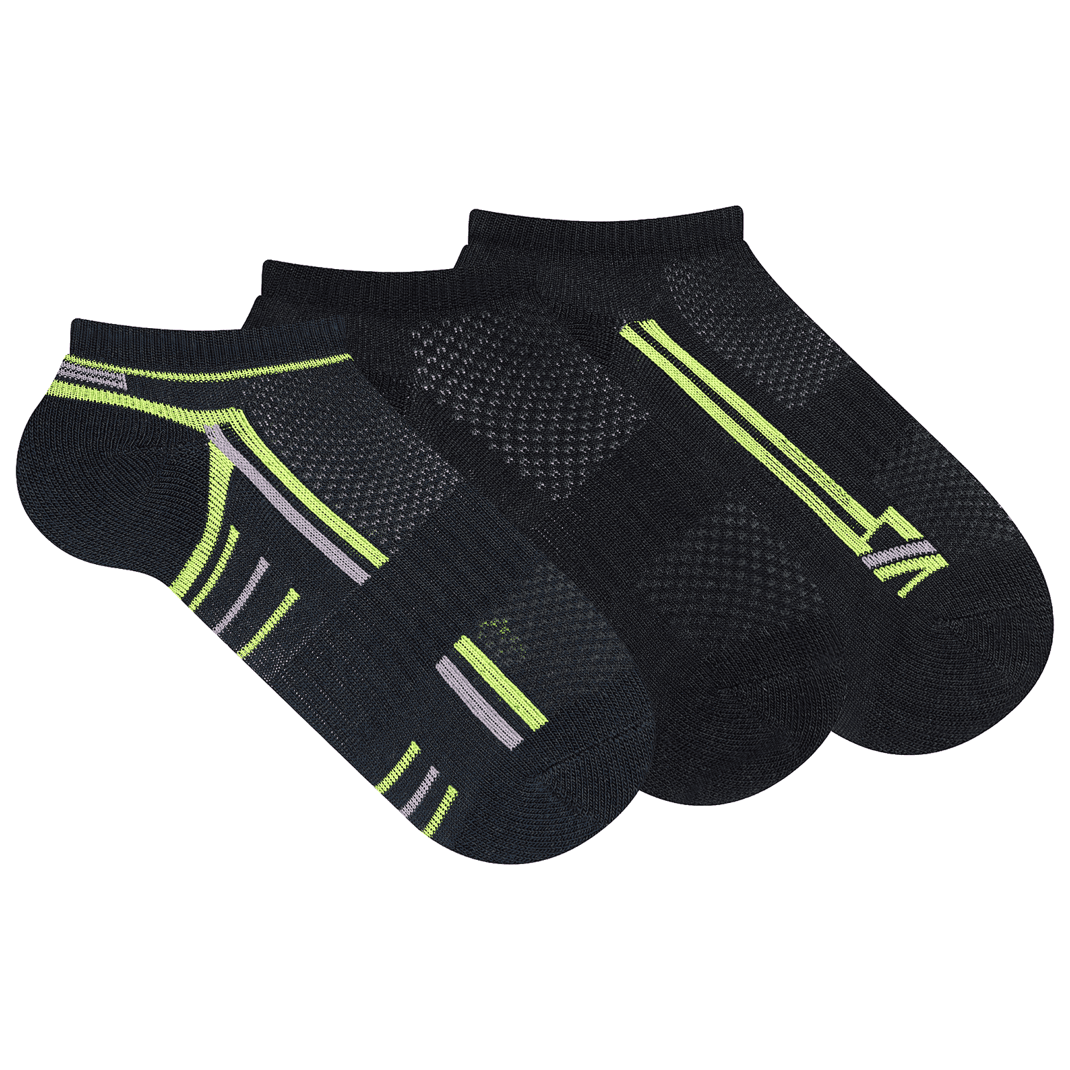 Kit composto por três pares de meias no modelo cano curto. Confeccionadas em tecido de algodão, acabamento e costura no mesmo tom.