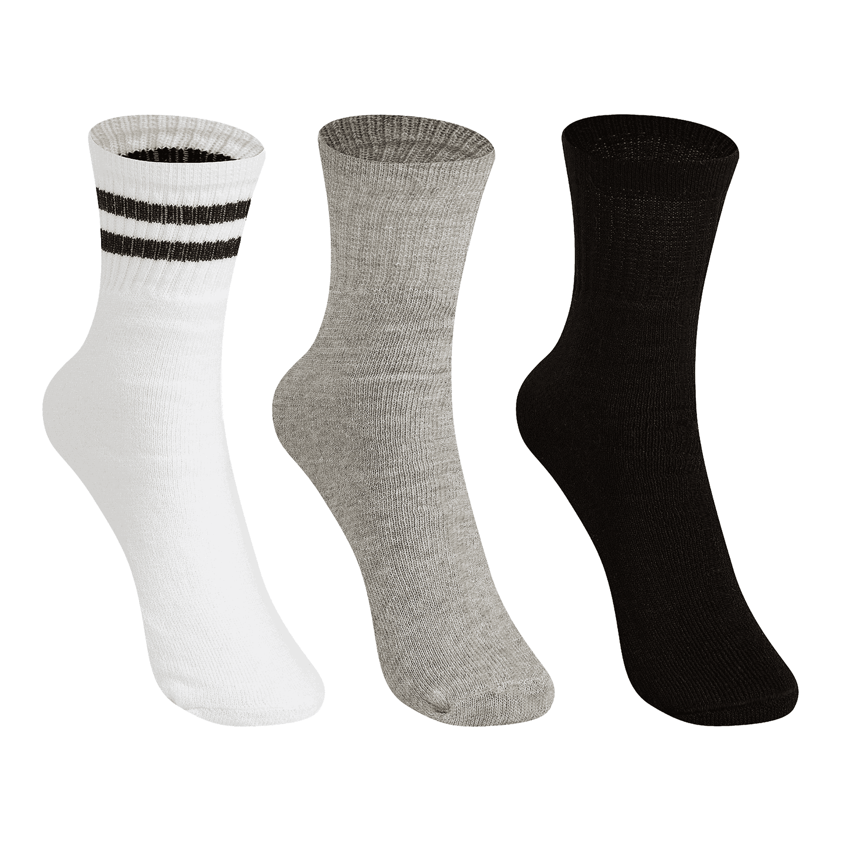 Kit composto por três pares de meias cano médio esportiva. Confeccionadas em tecido de algodão, elas apresentam opções de cores, com acabamento e costura no mesmo tom.