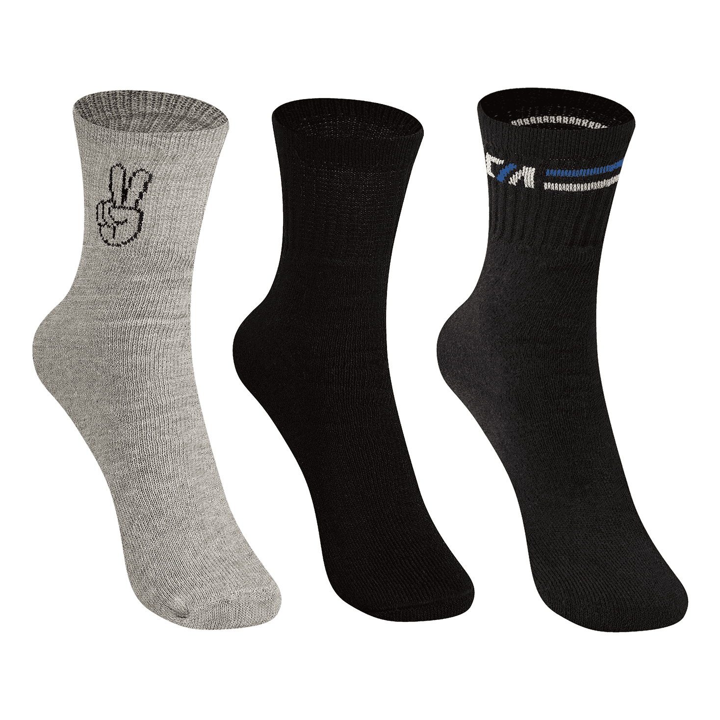 Kit composto por três pares de meias cano médio esportiva. Confeccionadas em tecido de algodão, elas apresentam opções de cores, com acabamento e costura no mesmo tom.
