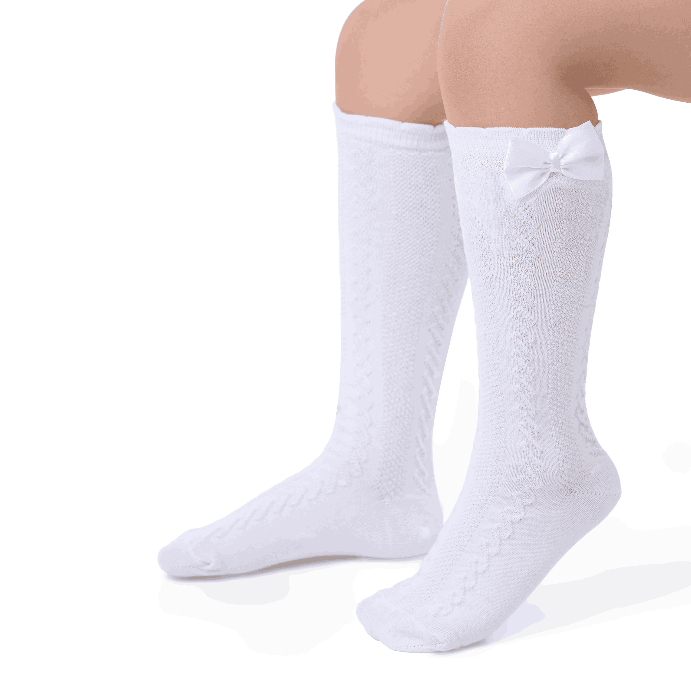 Meia modelo 3/4 de festa, possui textura por todo seu comprimento e laço em seu punho, confeccionadas em tecido de algodão, com acabamento e costura no mesmo tom. Criadas para trazer mais charme e fofura ao look de festa.