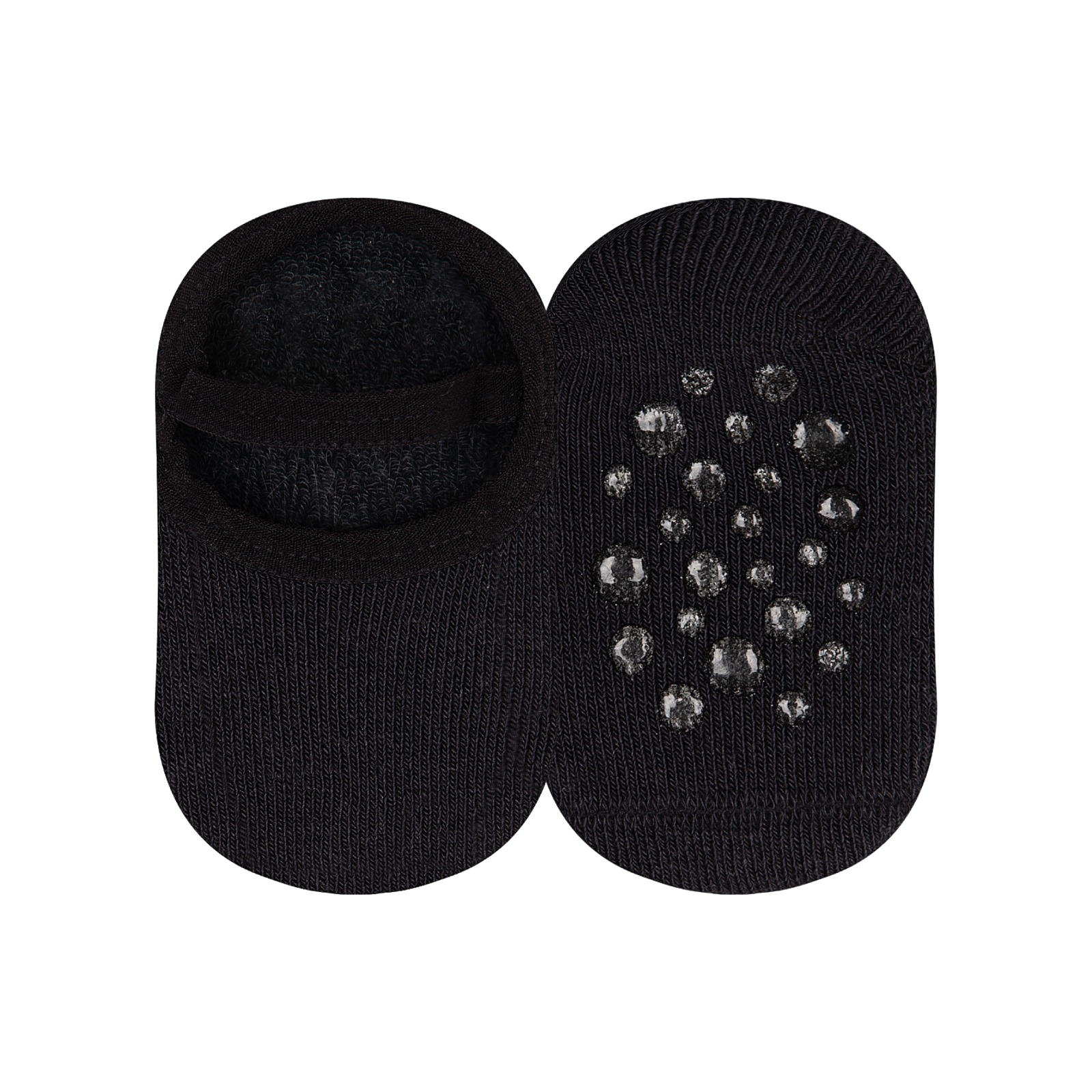 Meia bebê, modelo sapatilha, confeccionada em algodão. Possui tira elástica, solado antiderrapante emborrachado, acabamento e costura no tom.