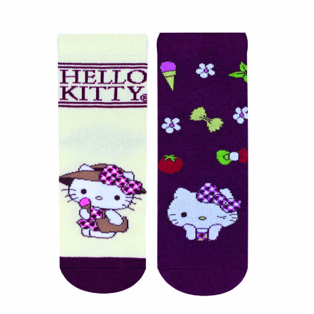 Kit composto por três pares de meias soquete. Confeccionadas em tecido de algodão, elas apresentam estampas fofas da Hello Kitty, com acabamento e costura no mesmo tom.