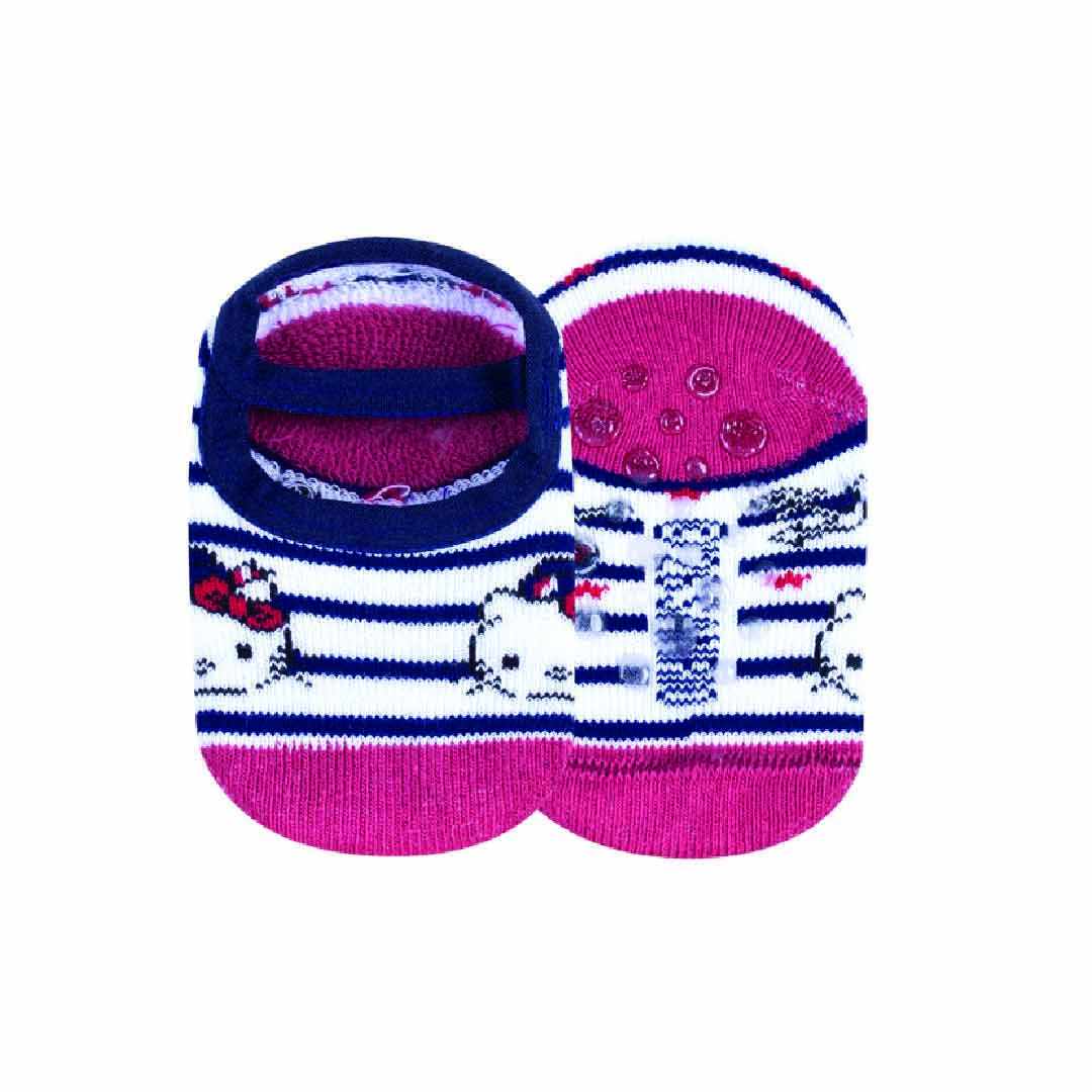 Meia modelo sapatilha com alça, confeccionadas em algodão. Elas apresentam estampas fofas da Hello Kitty, com acabamento e costura em tons harmonioso e antiderrapante na sola do pé, que auxilia na segurança em cada passinho.
