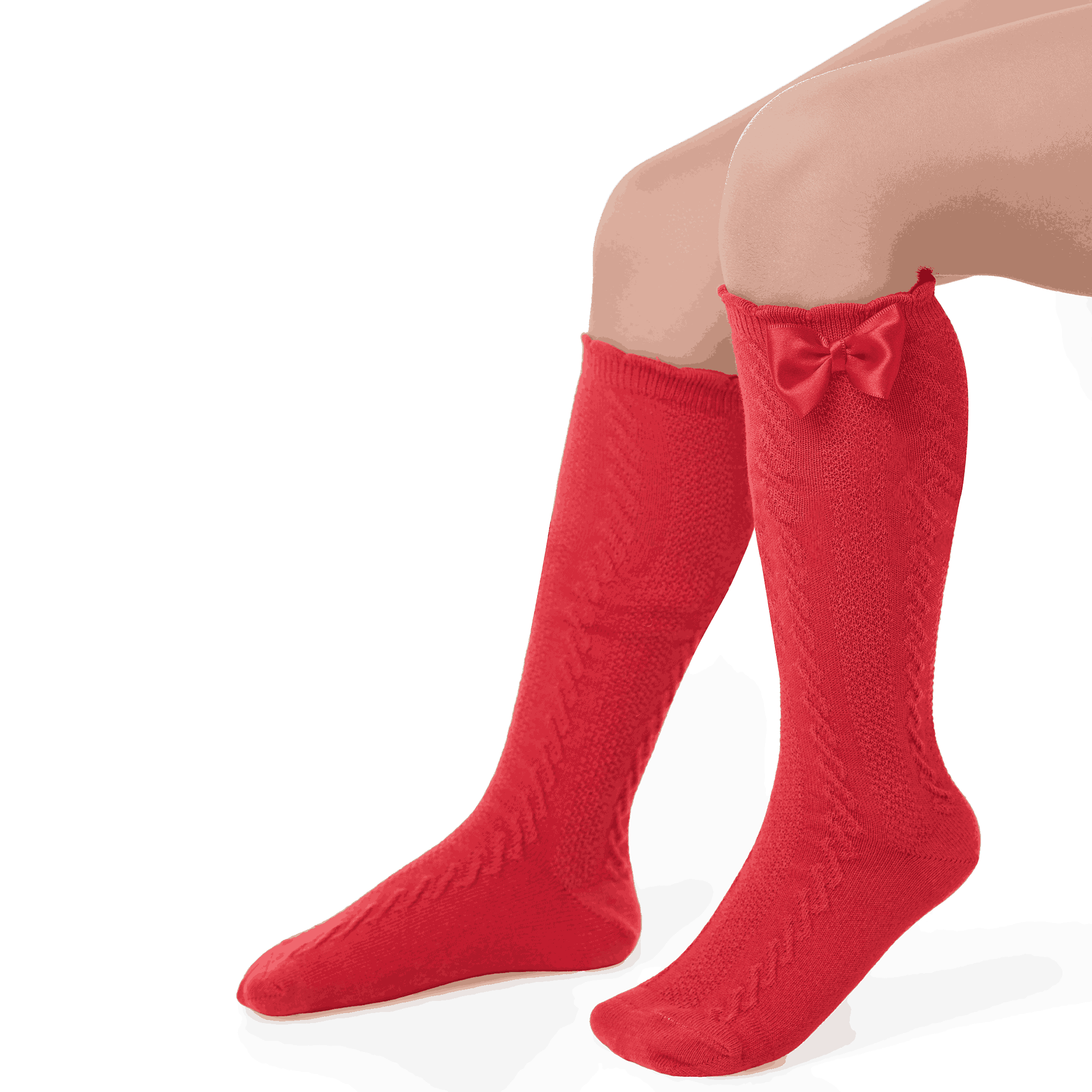 Meia modelo 3/4 de festa, possui textura por todo seu comprimento e laço em seu punho, confeccionadas em tecido de algodão, com acabamento e costura no mesmo tom. Criadas para trazer mais charme e fofura ao look de festa.