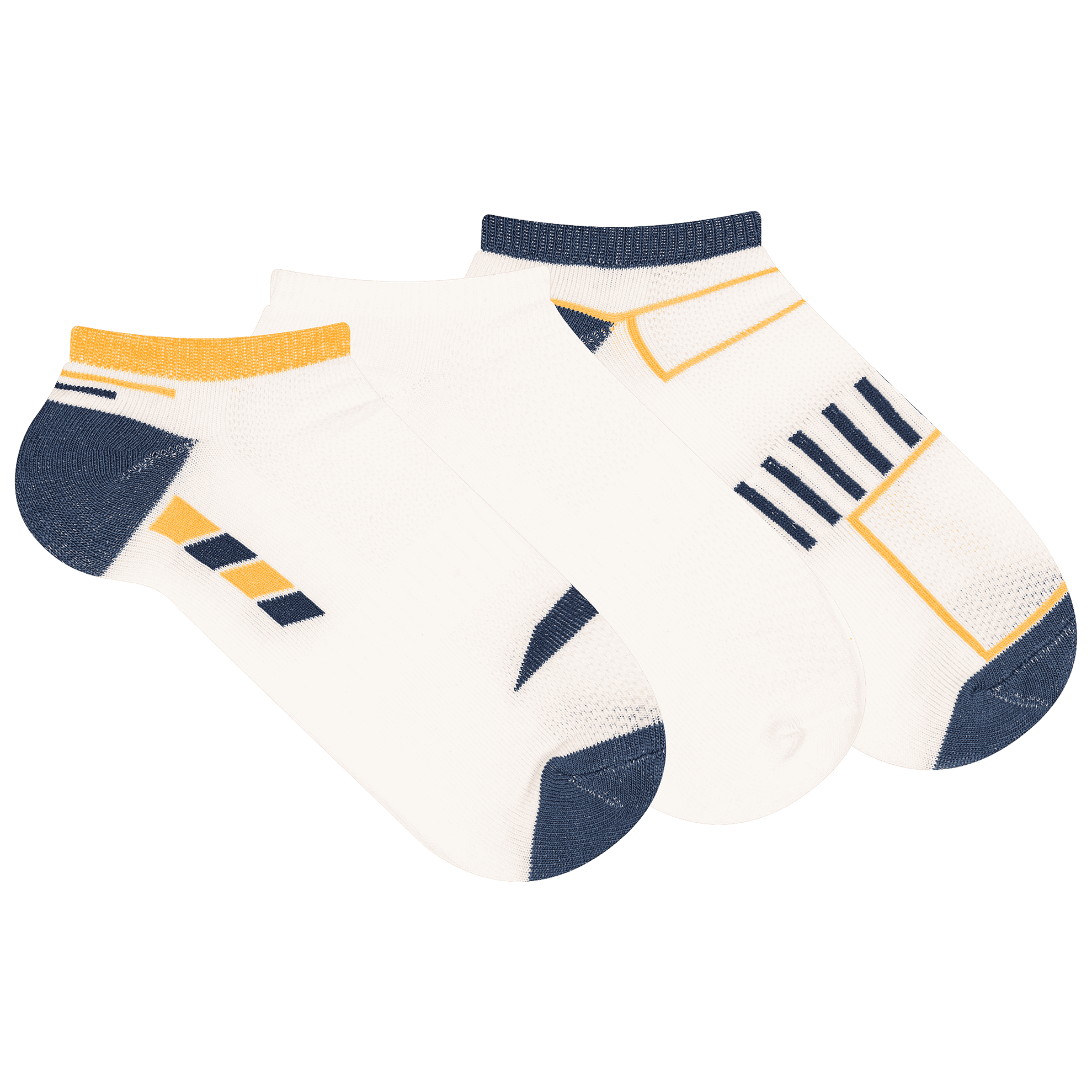 Kit composto por três pares de meias no modelo cano curto. Confeccionadas em tecido de algodão, acabamento e costura no mesmo tom.