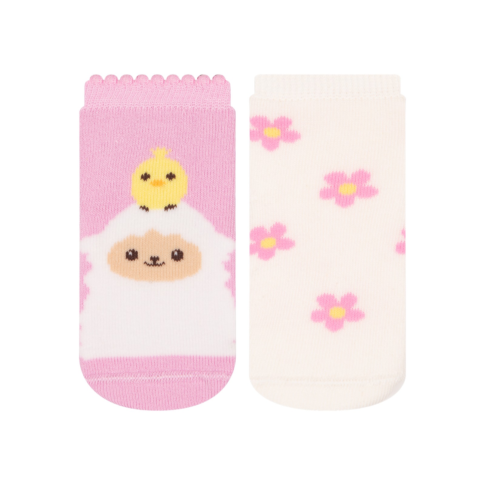 Kit composto por dois pares de meias modelo soquete, confeccionadas em algodão. Elas apresentam estampa divertidas, tecido atoalhado por toda a meia, acabamento e costura em tons harmoniosos.