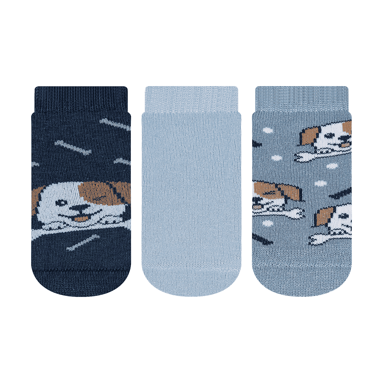 Kit composto por três pares de meias modelo soquete, confeccionadas em algodão. Elas apresentam estampa de cachorrinhos, com acabamento e costura em tons harmoniosos.
